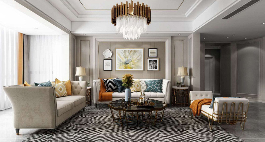 曉港名城140㎡三室兩廳客廳沙發(fā)現(xiàn)代簡約風(fēng)格裝修案例效果圖