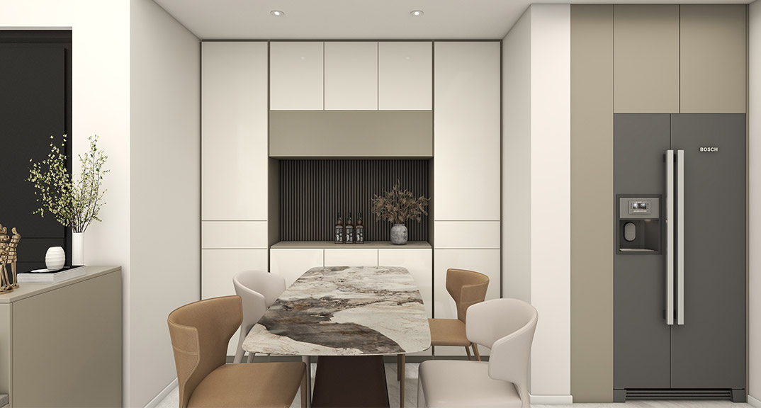 保利時代110㎡三室兩廳餐廳現(xiàn)代風(fēng)格裝修案例效果圖