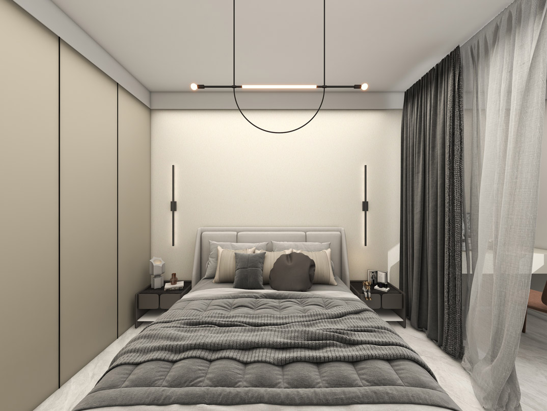 保利時代110㎡三室兩廳主臥現(xiàn)代風(fēng)格裝修案例效果圖