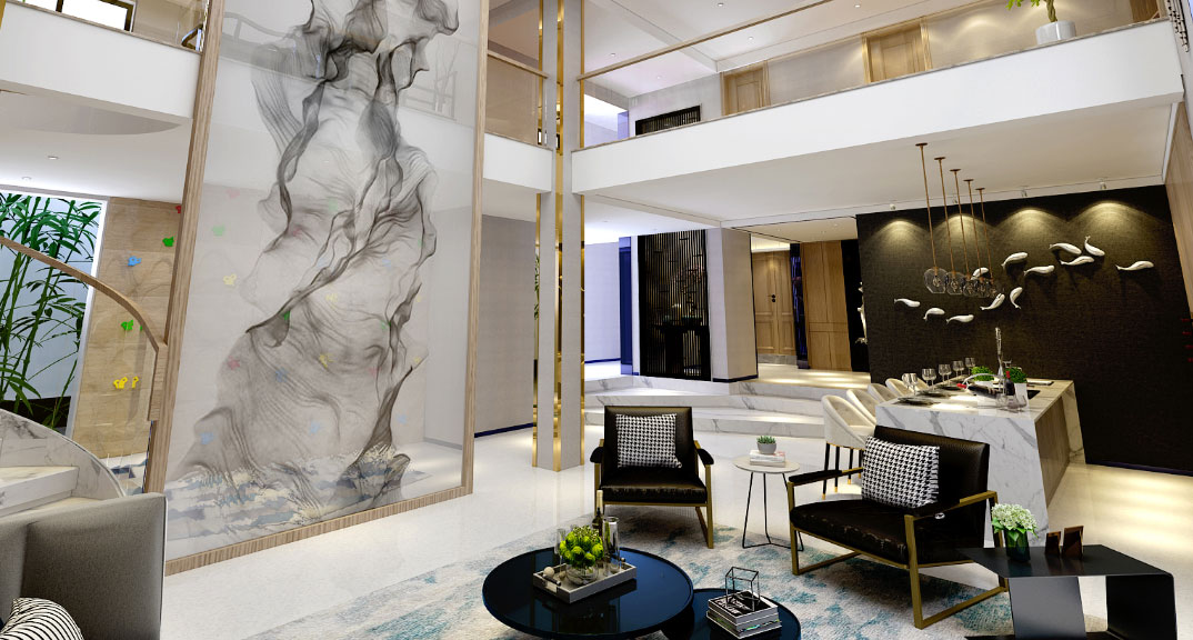 名悅山莊700㎡獨(dú)棟別墅一層門廳港式風(fēng)格裝修案例效果圖