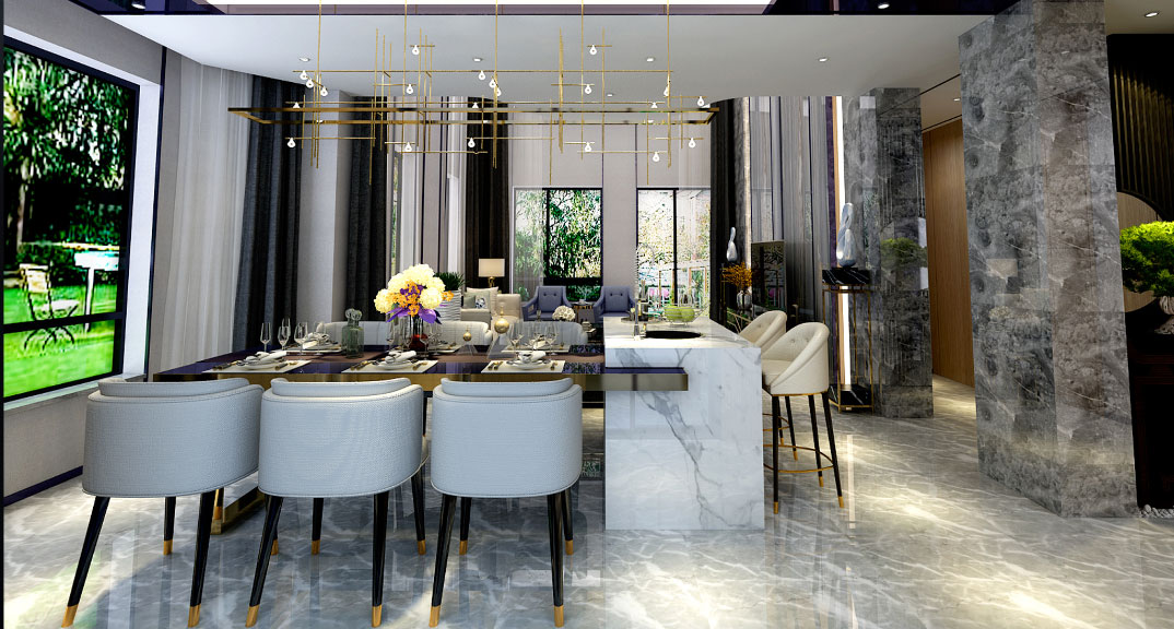名悅山莊700㎡獨(dú)棟別墅負(fù)一層西廚港式風(fēng)格裝修案例效果圖
