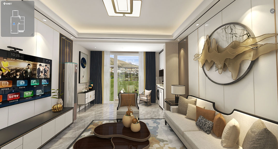 雍錦半島180㎡別墅客廳電視上疊輕奢風(fēng)格裝修案例效果圖