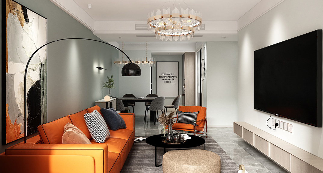 盛世華府126㎡三室兩廳客廳沙發(fā)現(xiàn)代風(fēng)格裝修案例效果圖