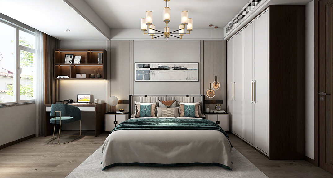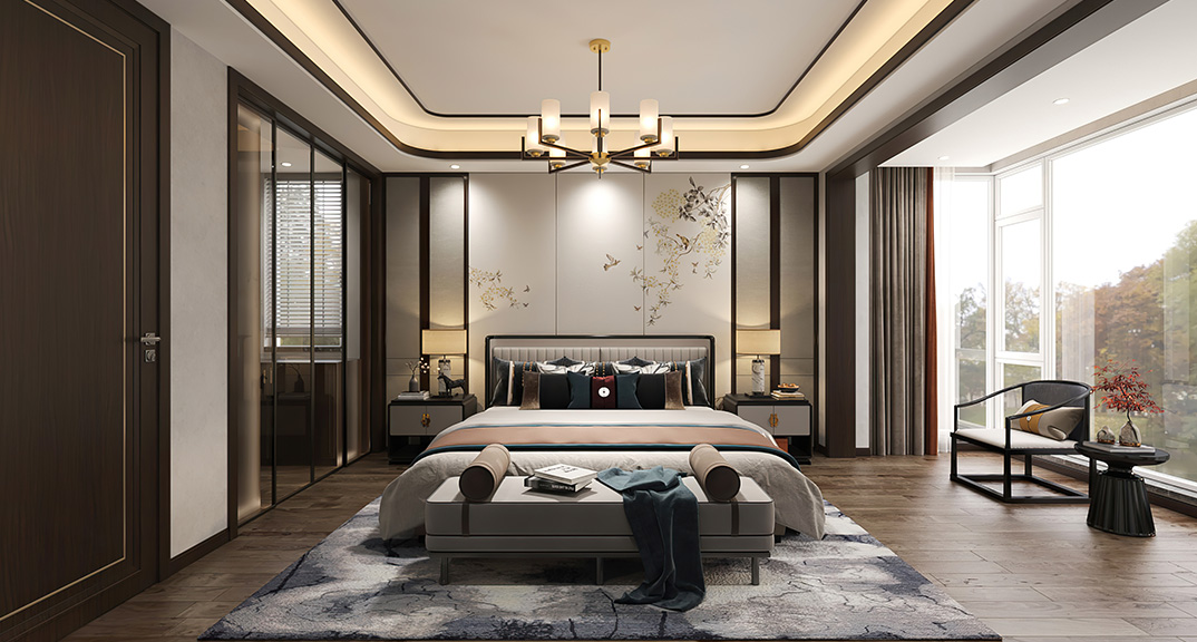 仟佰墅150㎡別墅上疊主臥新中式風(fēng)格裝修案例效果圖