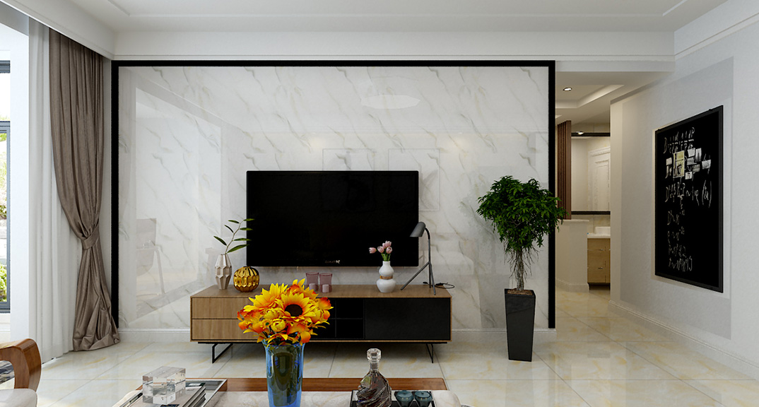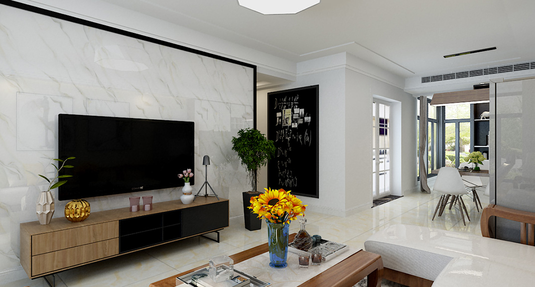 安泰名筑190㎡四室兩廳客廳電視現(xiàn)代中式風格裝修案例效果圖