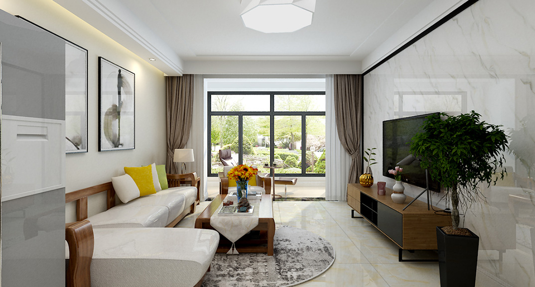 安泰名筑190㎡四室兩廳客廳現(xiàn)代中式風格裝修案例效果圖