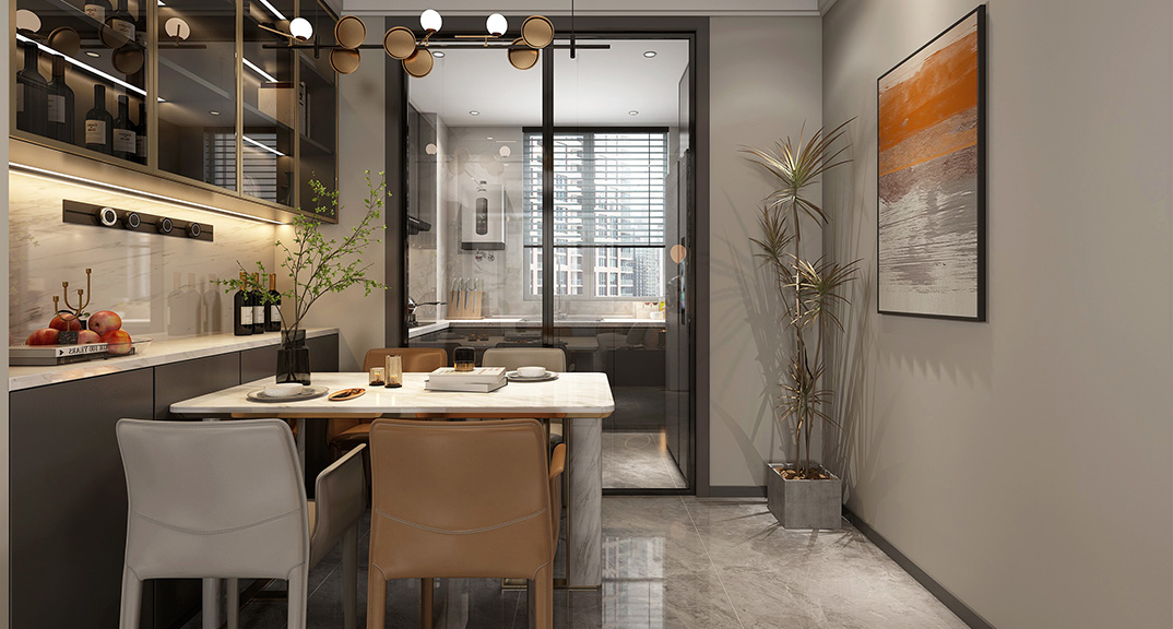 影都壹號127㎡三室兩廳餐廳意式輕奢風格裝修案例效果圖