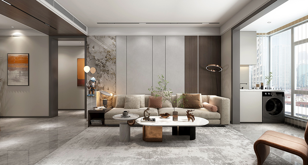 本案設計風格為意式輕奢,拒絕了濃烈的色彩,以一種簡單、純粹的設計語言,回歸生活的本質,留存給居住者更多生活想象的空間。