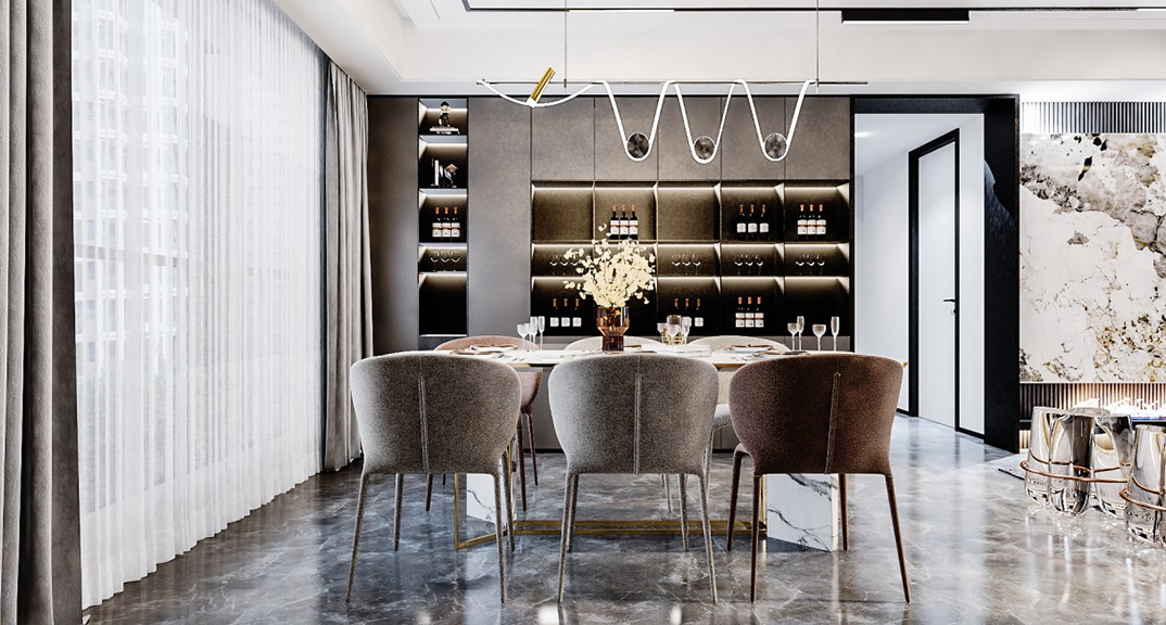 君悅府132㎡三室兩廳餐廳輕奢風格裝修案例效果圖