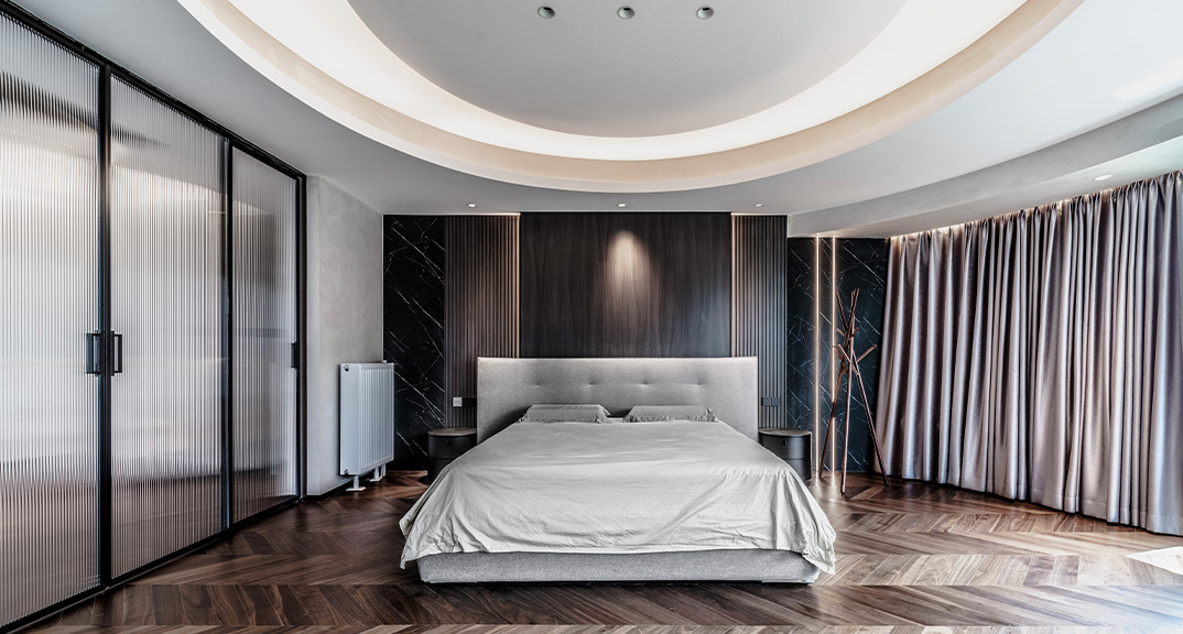 恒大雅苑330㎡平層主臥現(xiàn)代臺式風(fēng)格裝修案例效果圖