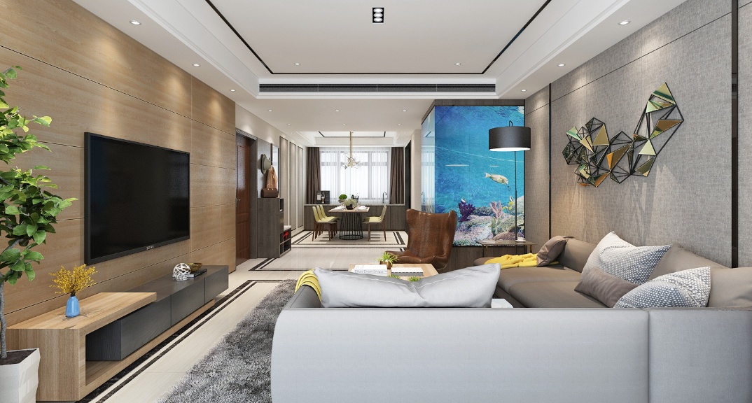 本案以現(xiàn)代港式風(fēng)格設(shè)計(jì),進(jìn)門的魚缸在靜止的空間中平添了一份靈動(dòng)靚麗的風(fēng)景線。客廳體現(xiàn)了主人的品味,地位,也是交友娛樂(lè)的場(chǎng)合,影視墻凹凸線條的護(hù)墻板很好的隱藏了孝親房的門讓整個(gè)空間融為一體。設(shè)計(jì)注重居室的實(shí)用性,而且還體現(xiàn)了工業(yè)化社會(huì)生活的精致與個(gè)性,符合現(xiàn)代人的生活品位。在處理空間方面以空間寬敞、內(nèi)外通透,在空間平面設(shè)計(jì)中追求不受承重墻限制的自由。墻面、地面、頂棚以及家具的陳設(shè)乃只燈具器皿等均以簡(jiǎn)潔的造型、純潔的質(zhì)地、精細(xì)的工藝為特征,強(qiáng)調(diào)形式體現(xiàn)出一定的文化品位。在色彩運(yùn)用上,選擇柔和的光線,加之原木色家具呈現(xiàn)生活自然舒適性。