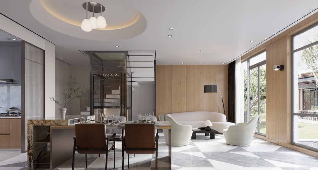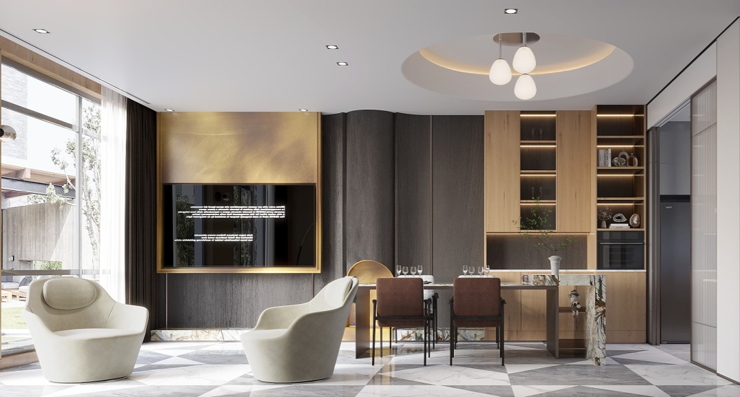整體設計以深灰色、黑色為主色調(diào),搭配木飾面、原木地板和金屬裝飾,營造沉穩(wěn)內(nèi)斂的現(xiàn)代風格。同時,注重空間的功能性和實用性,滿足業(yè)主及父母日常生活和休閑娛樂需求,打造舒適便捷、低調(diào)奢華的理想居所。